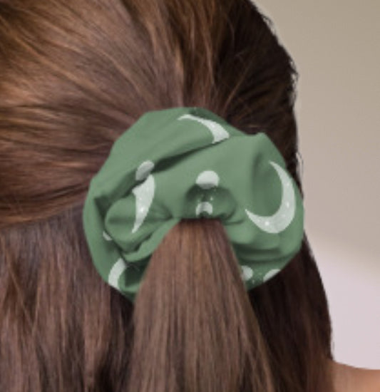 Sage Crescent Moon Recycled Scrunchie