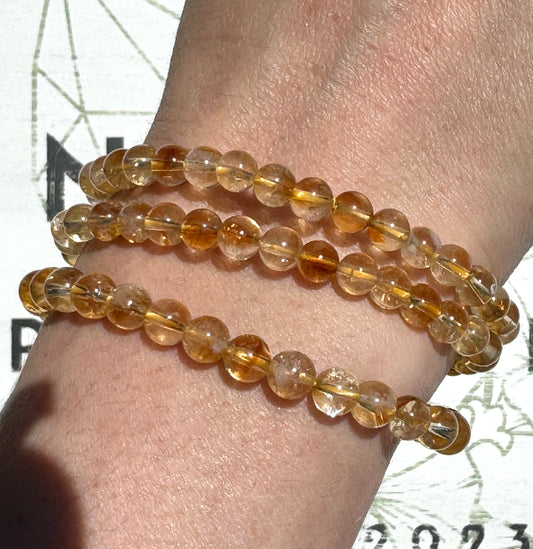 One (1) Honey Citrine Bracelet from Brazil (6mm Bead)