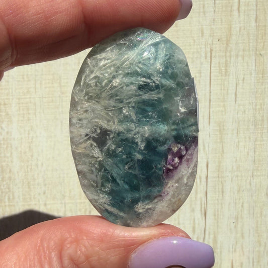 One (1) Rainbow Fluorite Palm Stone from Africa