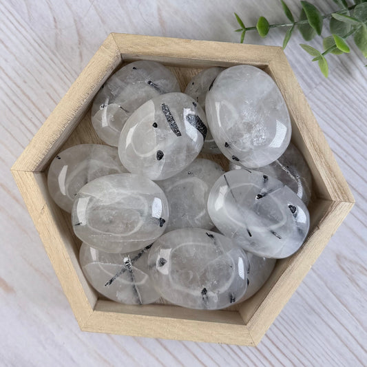 One (1) Tourmalinated Quartz Palm Stone