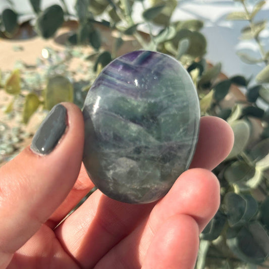 One (1) Rainbow Fluorite Palm Stone from Africa