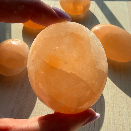 One (1) Large Peach Selenite Palm Stone from Morocco (~7.5cm)
