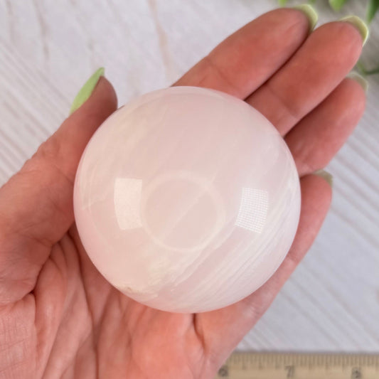 One (1) Medium Peach Selenite Palm Stone from Morocco (~6.5cm)