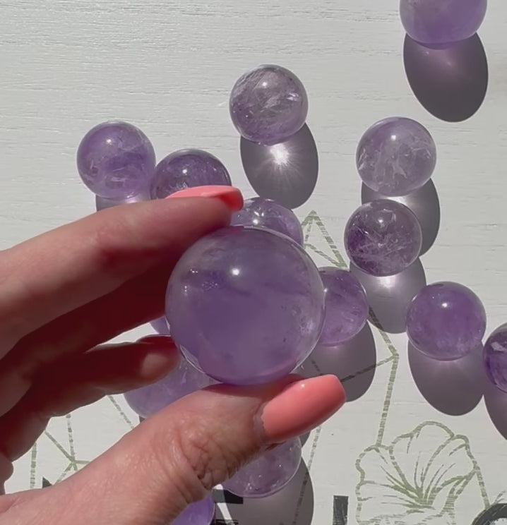 These Amethyst Spheres from Brazil offer more than just stunning beauty. Imbued with wisdom and peace, they provide a direct connection to the source, enhancing your spiritual journey.
