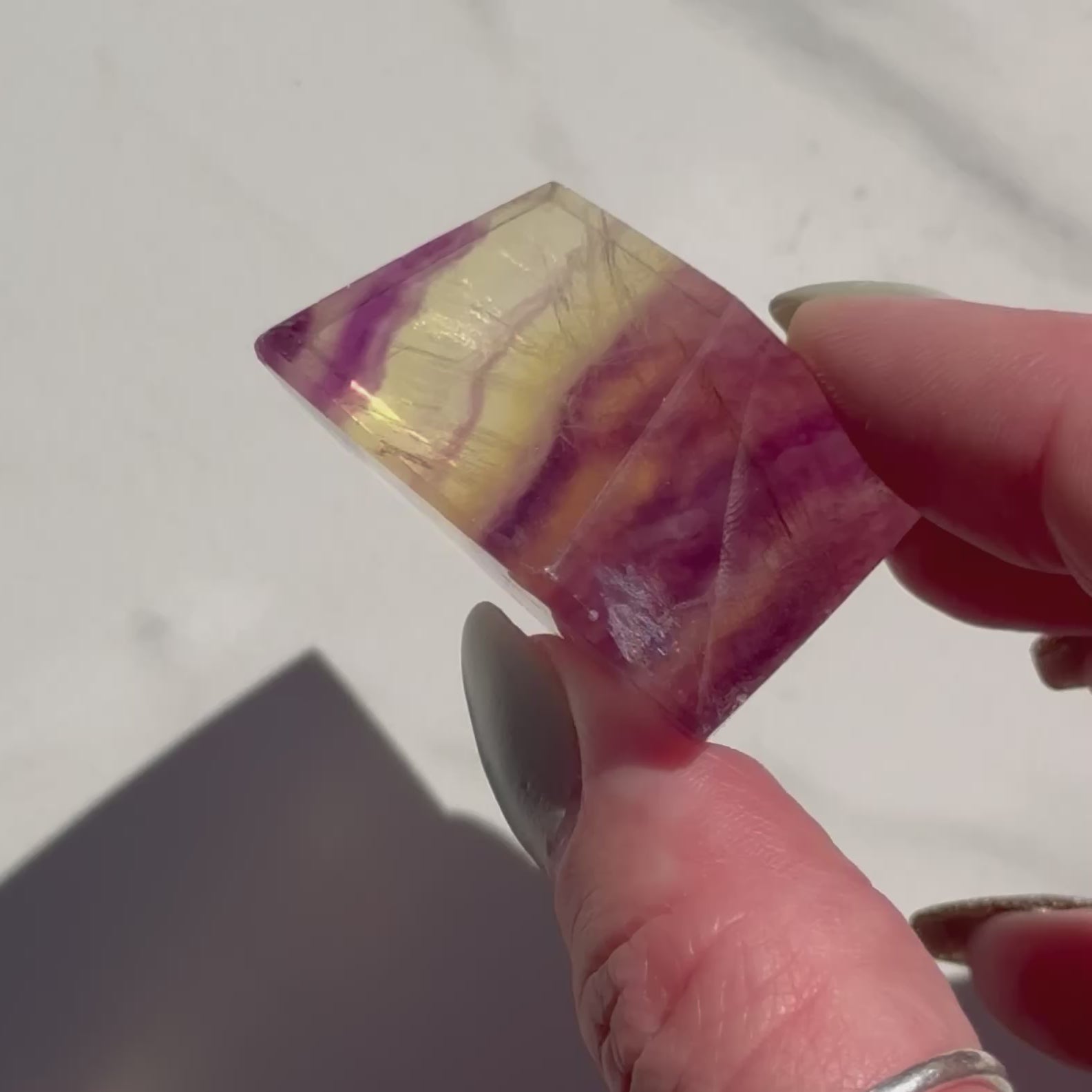 Material: Rainbow (Candy) Fluorite; polished freeform shape