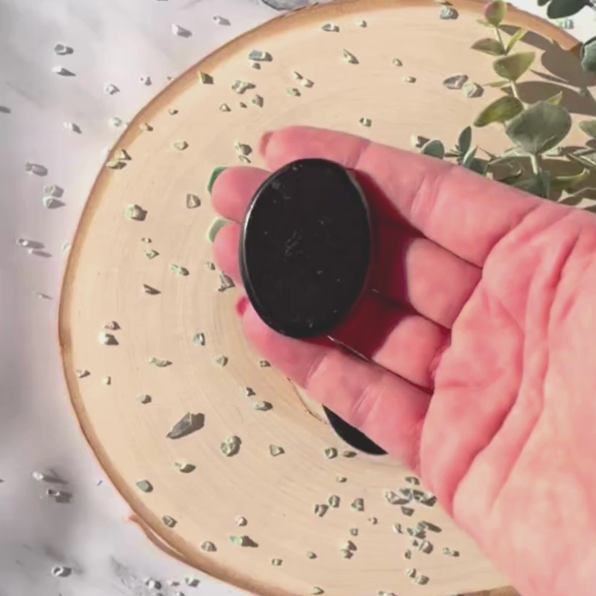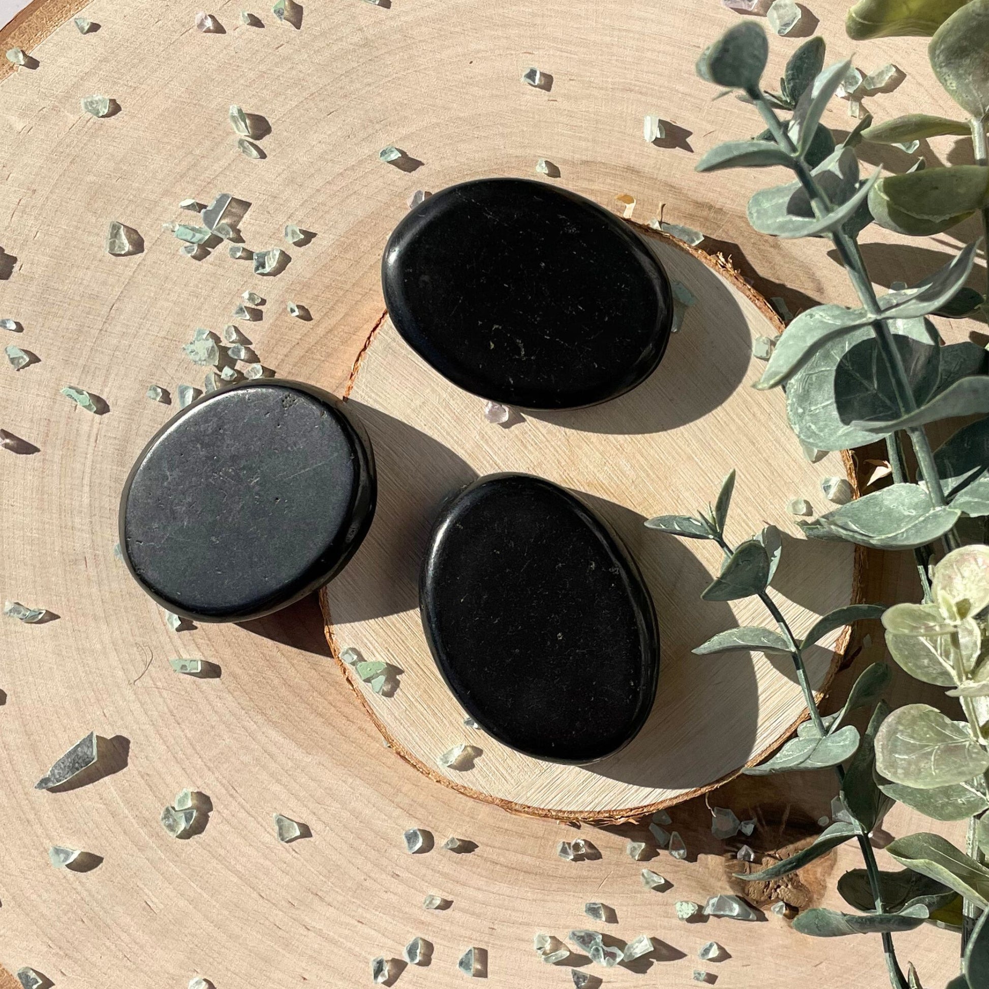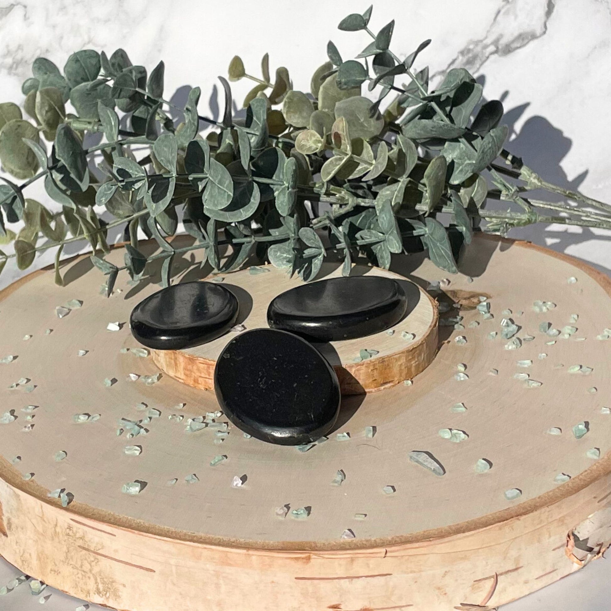 Embrace purification and grounding with our Flat Shungite Palm Stones, perfect for harmonizing energies.
