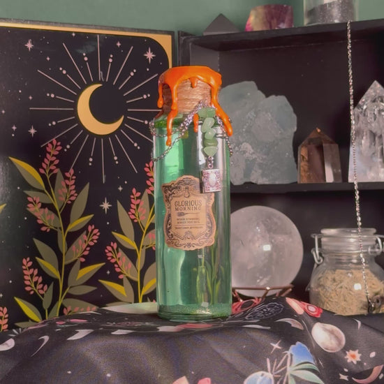 Handmade "Glorious Morning" Glass Kinetic Potion Bottle w/ Green Aventurine Crystals