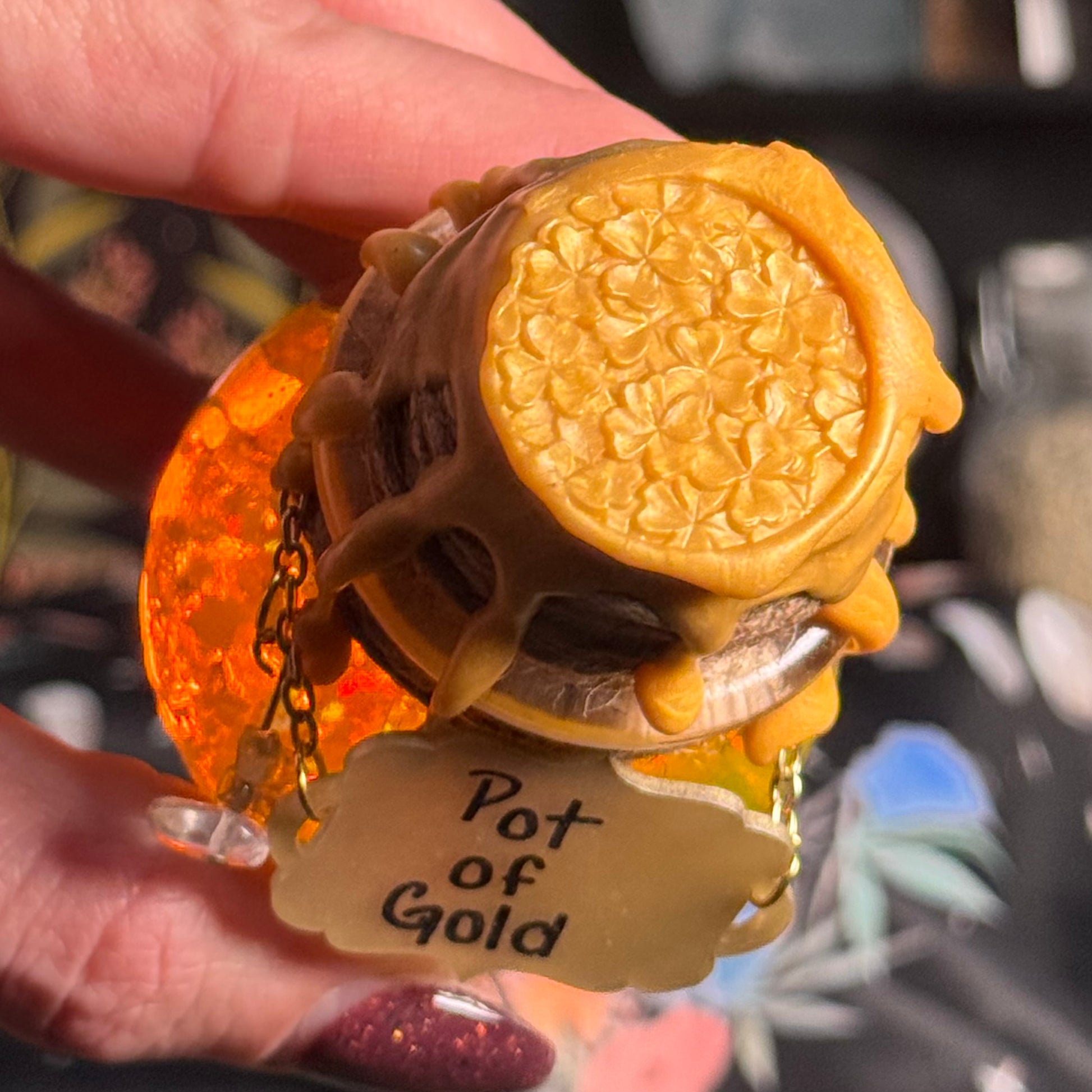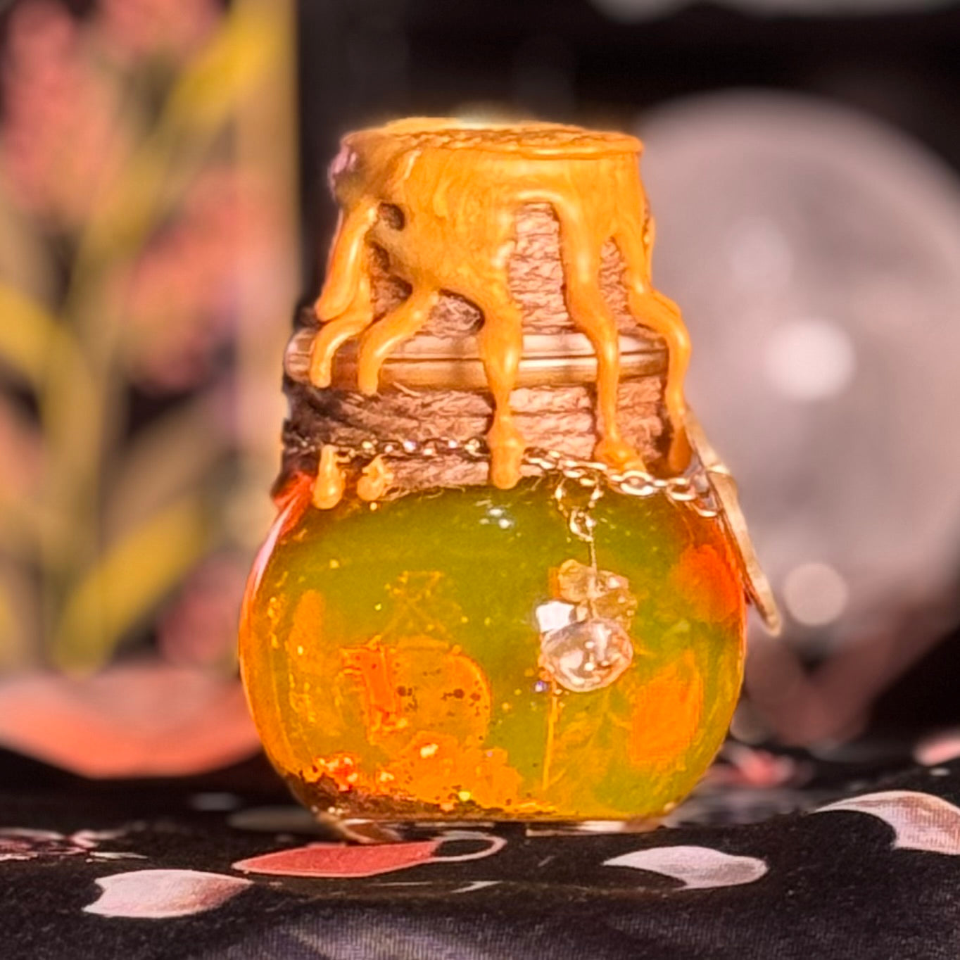 Mini Handmade "Pot of Gold" Glass Kinetic Potion Bottle w/ Clear Quartz & Citrine Crystals