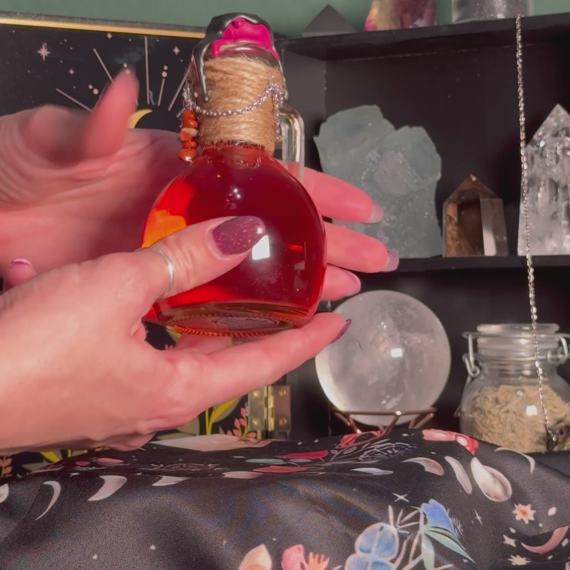 Handmade "Whiff of Mischief" Glass Kinetic Potion Bottle w/ Red Jasper Crystals