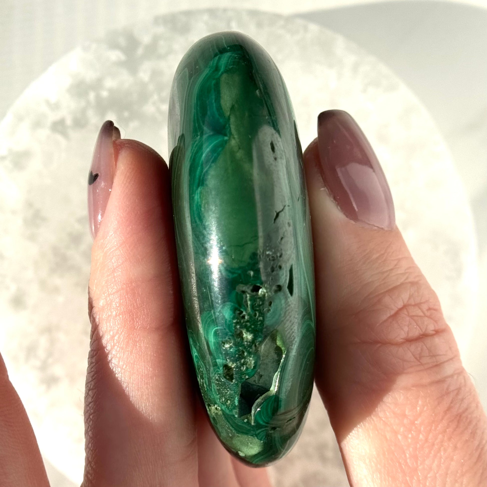 Enhance your spiritual connection with the divine feminine energy using our Malachite Palm Stone. Known for promoting fertility and love, this stone can bring balance and harmony to your life. Connect with your inner self and let the positive vibrations of Malachite guide you.