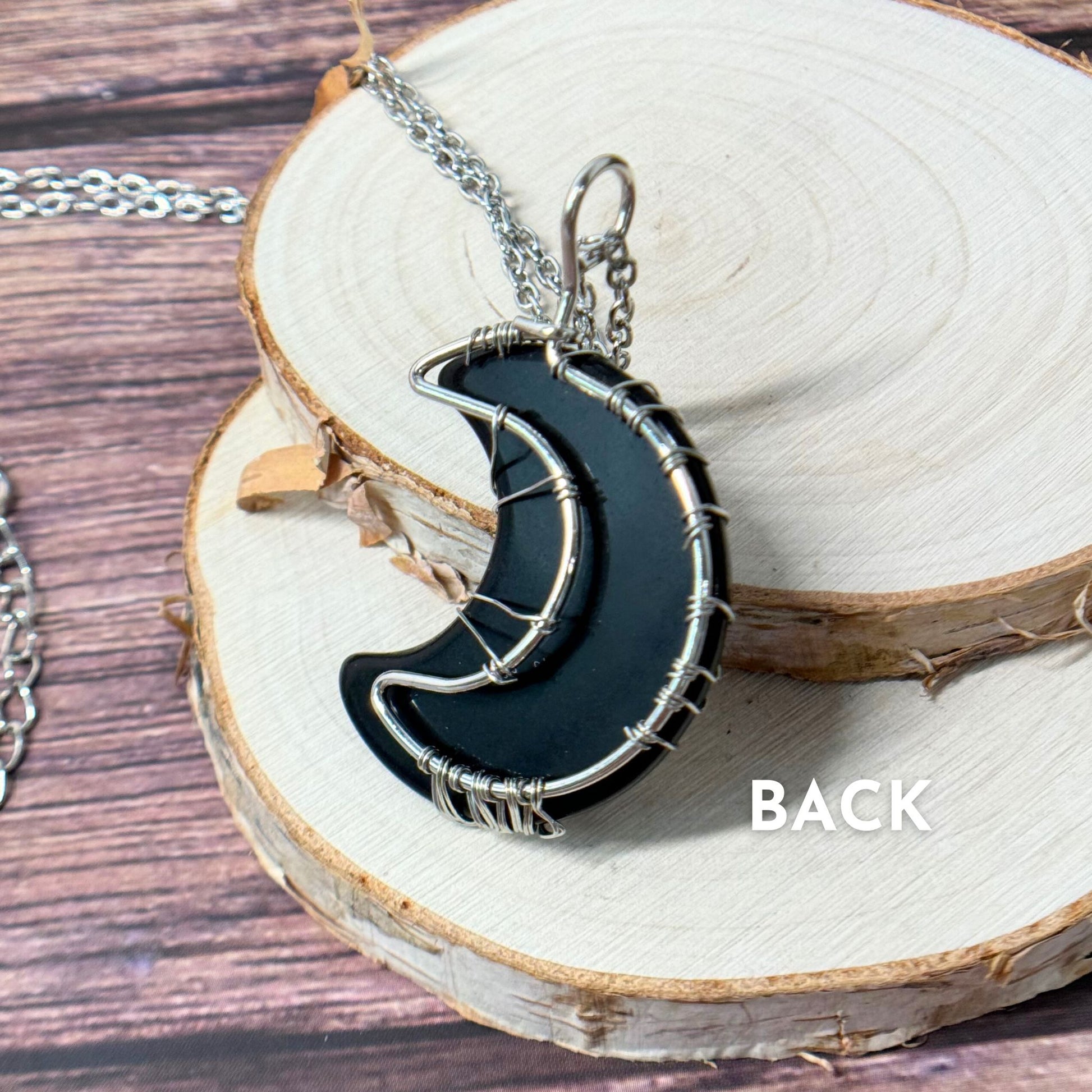 Obsidian Hand Wire Wrapped Moon Necklace