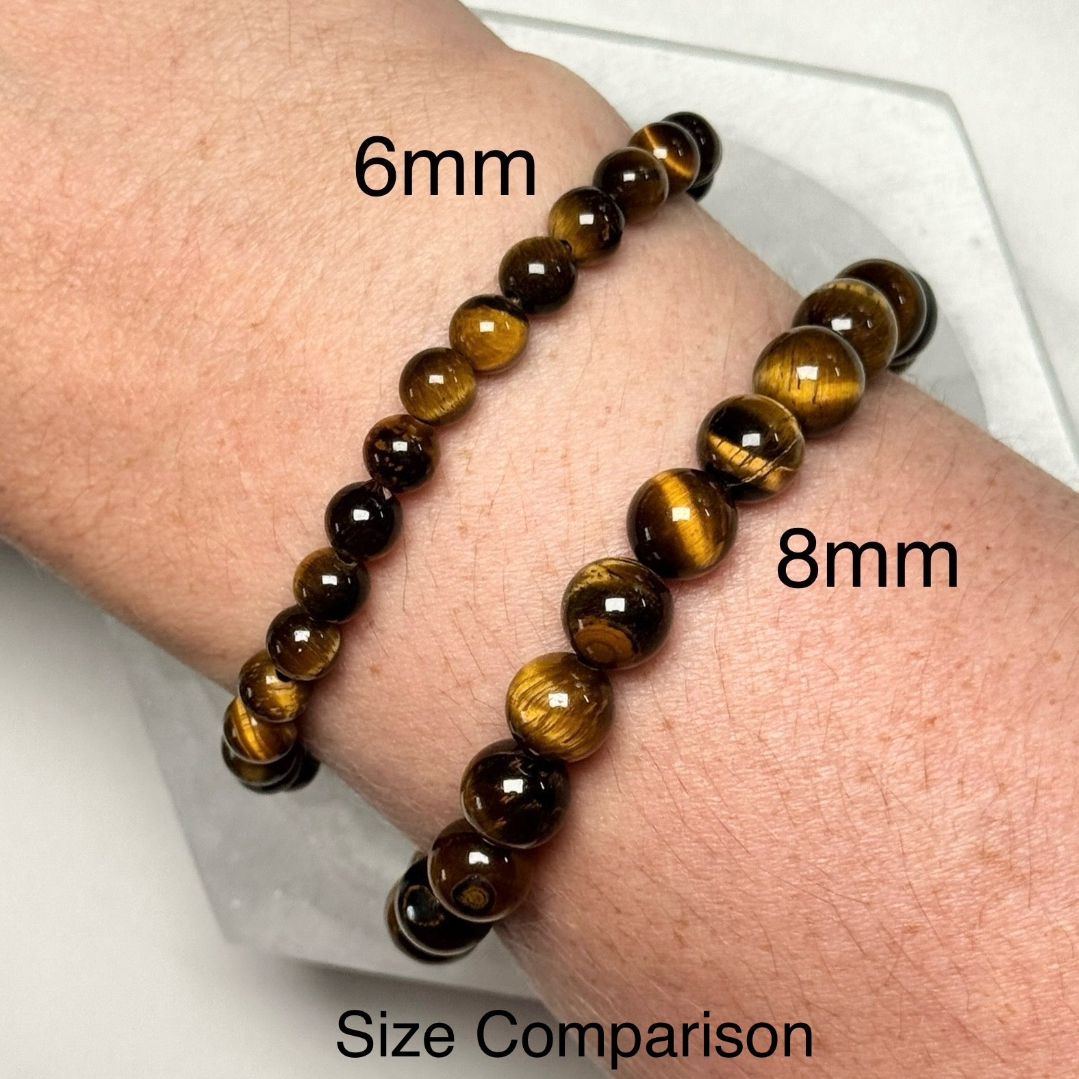 - Material: Golden Tiger’s Eye (chatoyant quartz); natural round beads on stretch cord