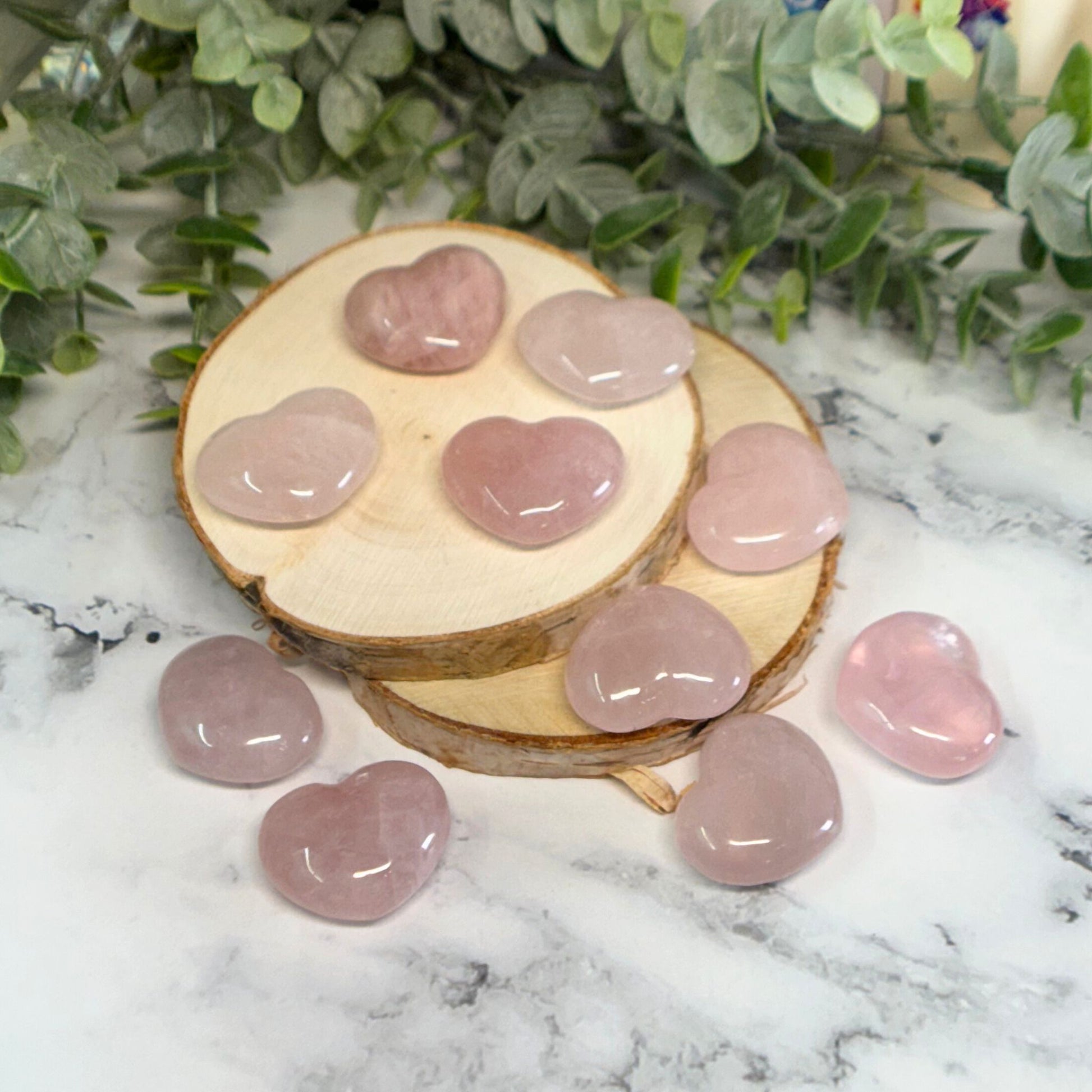 Elevate your love and connection with our Rose Quartz Mini Hearts, radiating the gentle vibration of unconditional love. Also known as pink quartz, these exquisite crystals embody the essence of love in all its forms—be it romantic, universal, familial, or friendly. Aligned with the heart chakra, Rose Quartz is a versatile companion, perfect for fostering self-forgiveness, strengthening relationships, and igniting the flames of romantic love. Whether you're looking to attract love, heal relationships, or express and release emotions, these mini hearts are a cherished addition to heart-centered rituals.