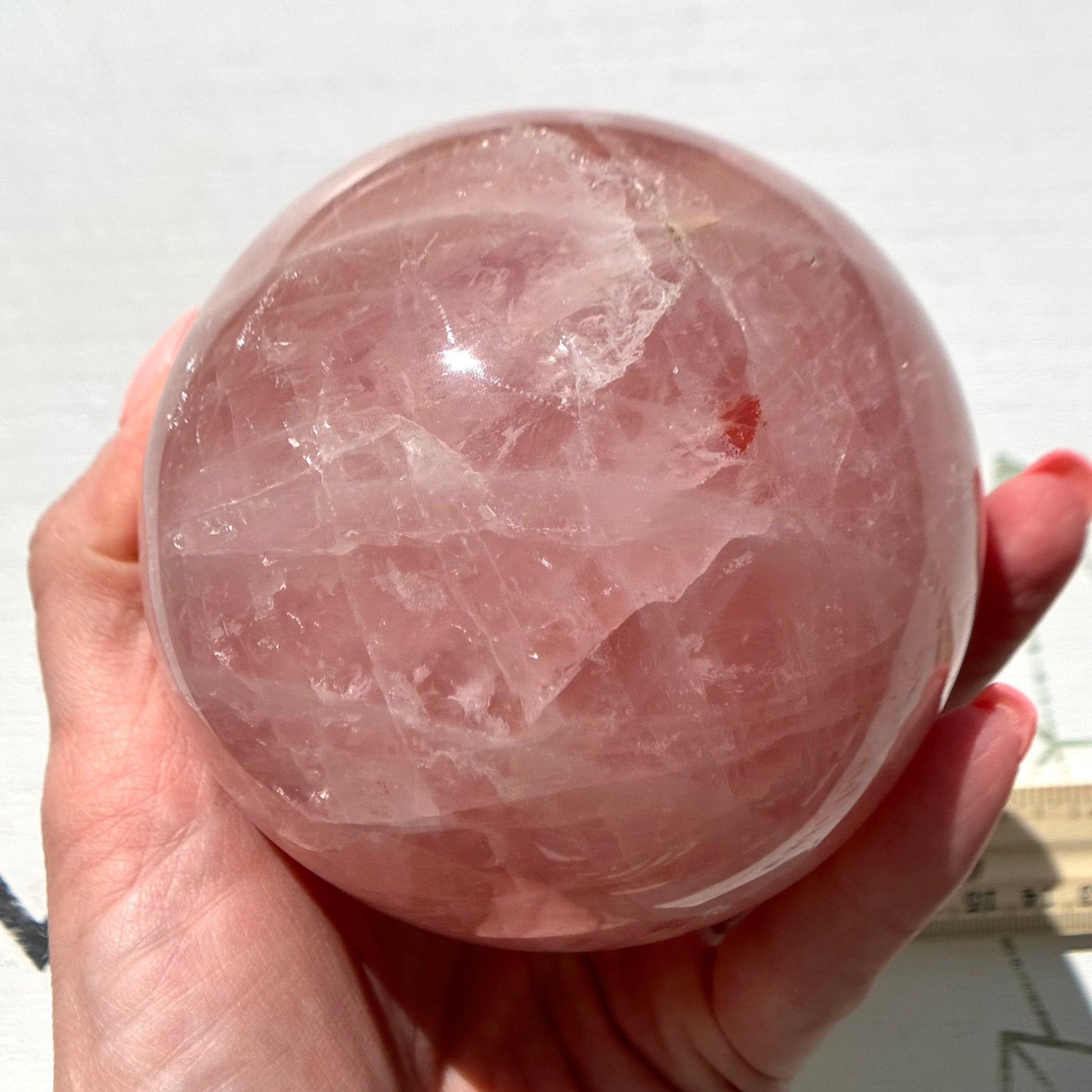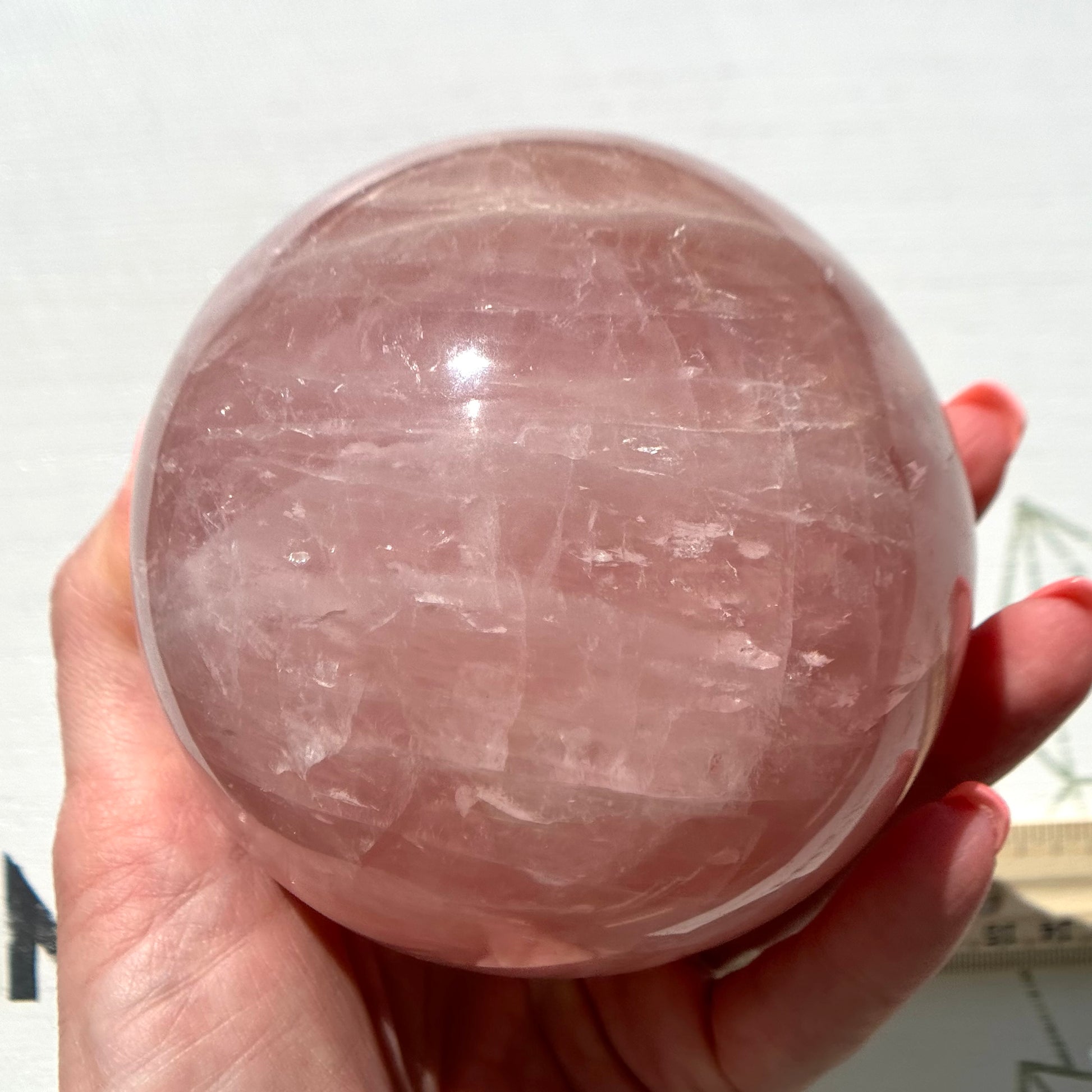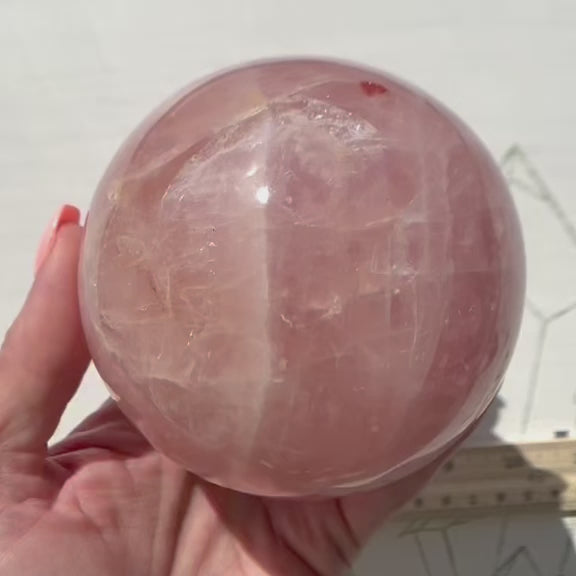This high quality Rose Quartz Sphere from Brazil offers more than just beauty, with its added asterism (bright flash similar to a star sapphire). With its natural compassion and emotional healing properties, it promotes self-love and strengthens relationships. A must-have for anyone looking to improve their emotional well-being.