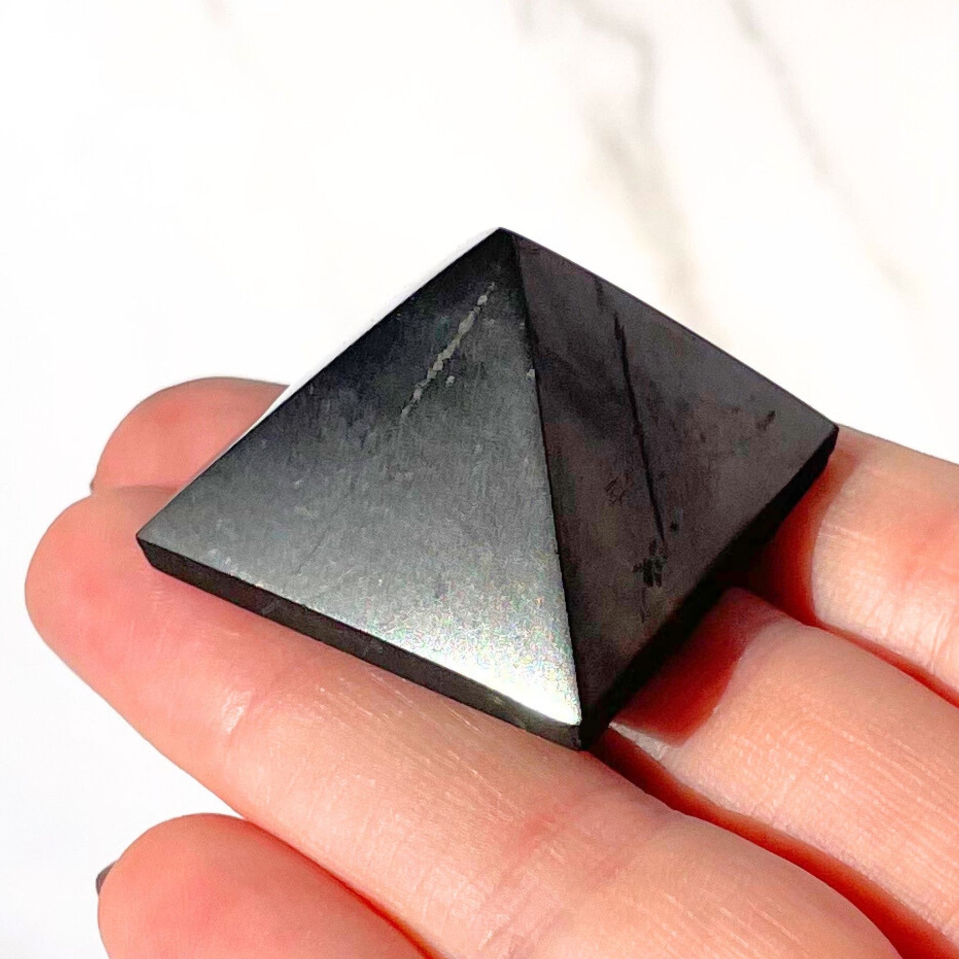 Discover the cleansing energies of our Small Shungite Pyramid. Ideal for shielding against electromagnetic radiation, purifying energies, and fostering mental clarity.